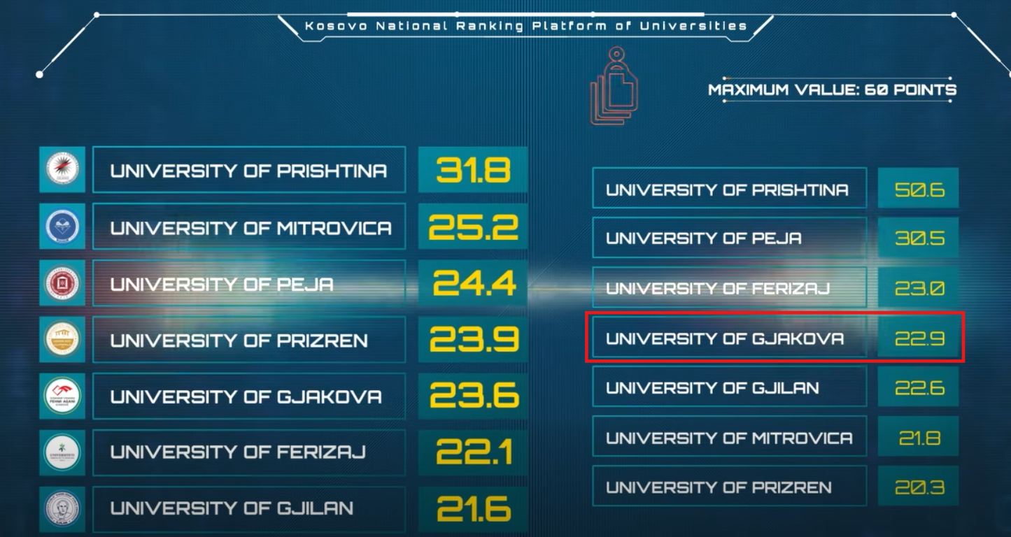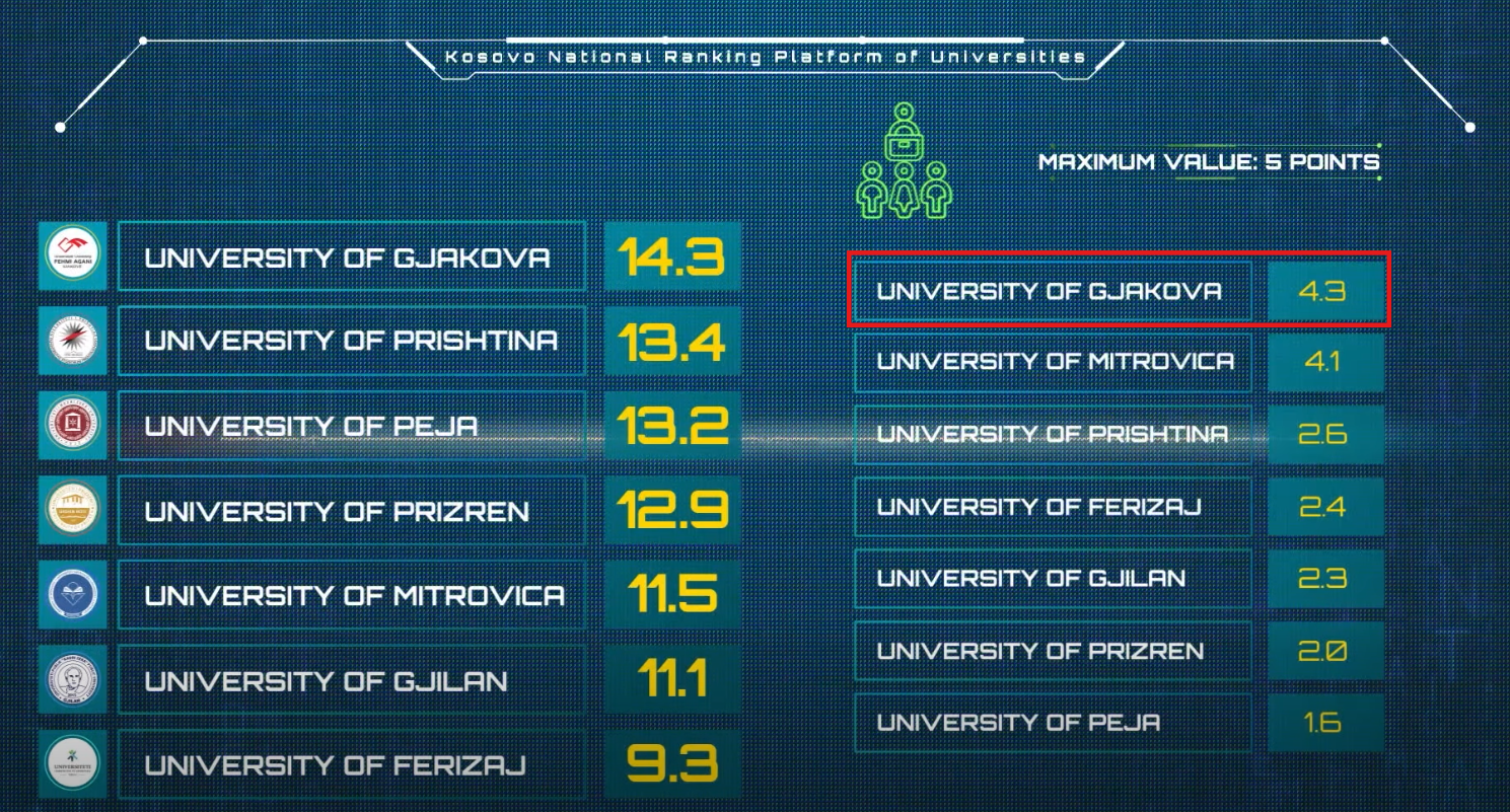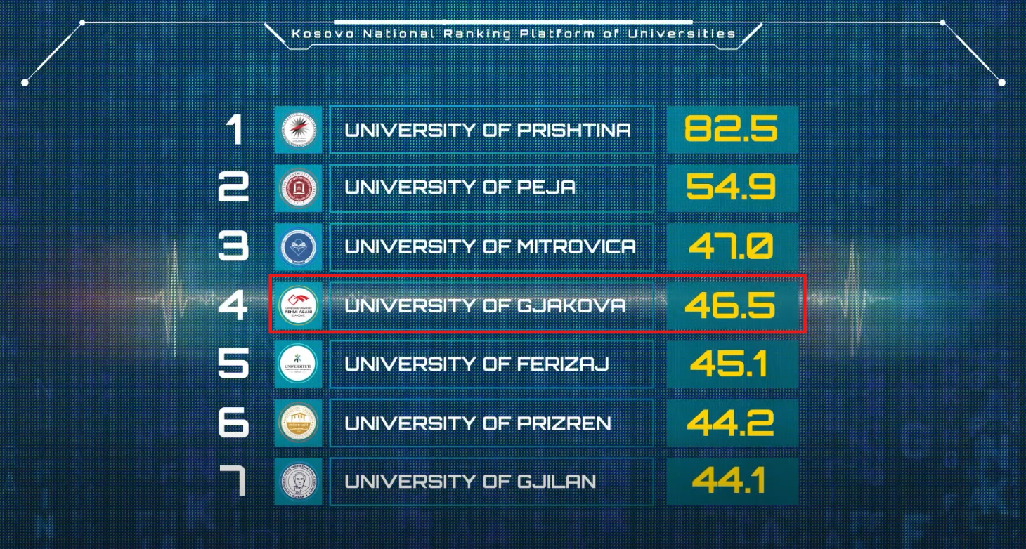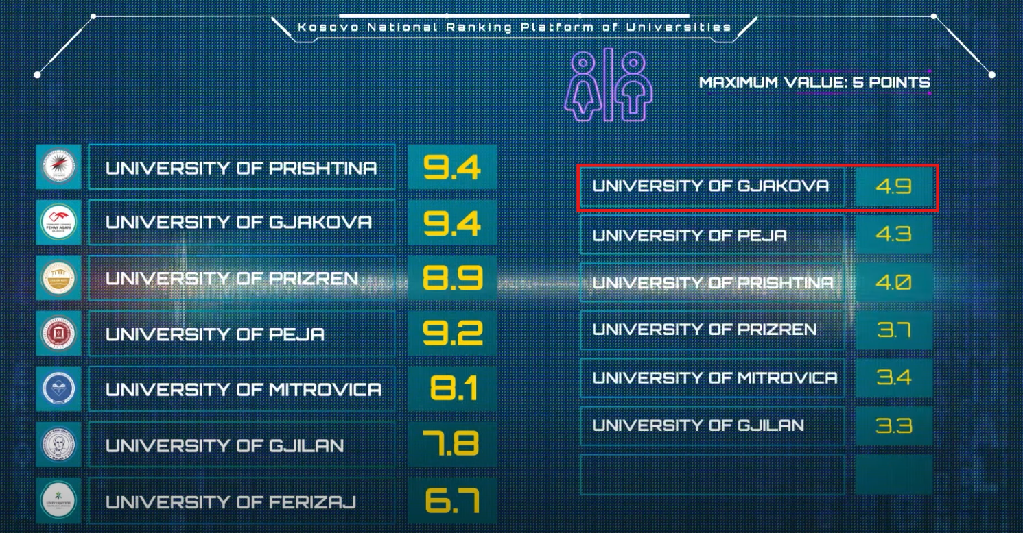 Këto rezultate e vendosin Universitetin “Fehmi Agani” në krye të listës për transparencë institucionale, barazi gjinore dhe raport student–profesor, duke treguar përkushtimin e universitetit ndaj standardeve të larta të qeverisjes dhe barazisë.
