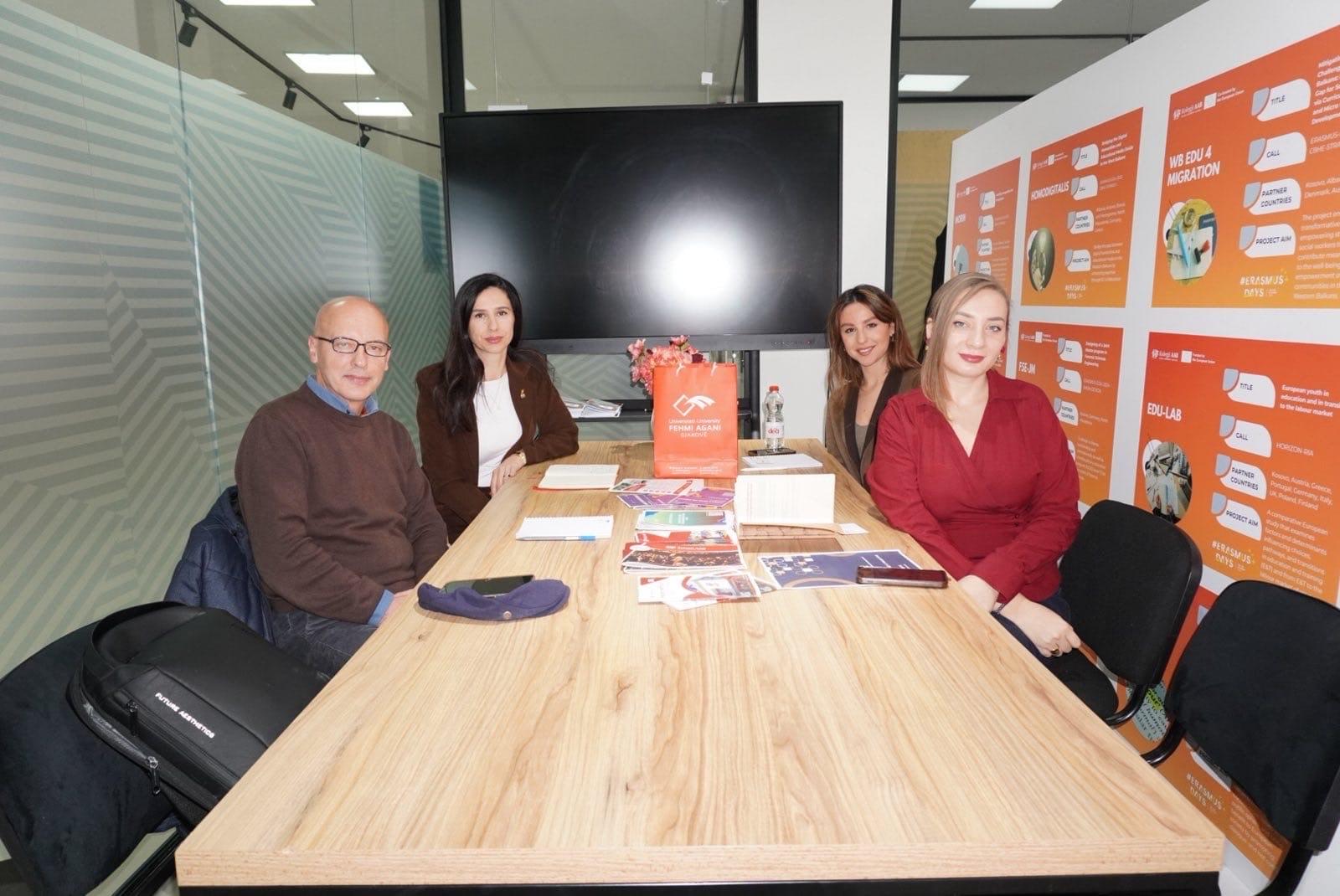 Gjatë këtyre ditëve, përfaqësuesit e Zyrës për Bashkëpunim Ndërkombëtar dhe Projekte të Universitetit “Fehmi Agani” në Gjakovë, Freskina Mula Ermeni dhe Bujar Nura, realizuan vizita zyrtare në tri institucione të arsimit të lartë: Kolegjin Universum, Kolegjin Heimerer dhe AAB Kolegjin, për fuqizimin e partneriteteve ndërkombëtare