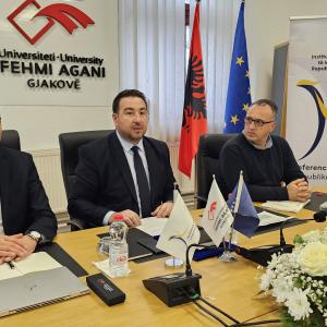 Në Universitetin "Fehmi Agani" në Gjakova (UFAGJ) u mbajt sot mbledhja përmbyllëse për vitin 2025 e Konferencës së Rektorëve të Universiteteve Publike të Kosovës, duke shënuar një moment të rëndësishëm të koordinimit institucional dhe planifikimit strategjik në arsimin e lartë publik.