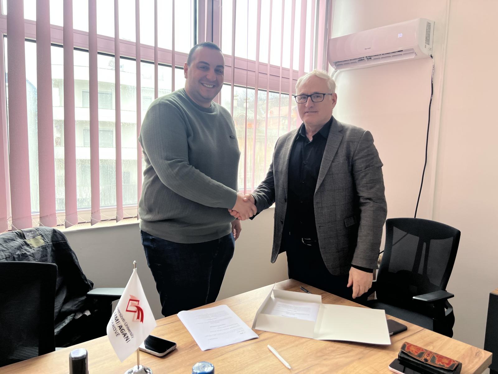 Fakulteti i Mjekësisë “Fehmi Agani” në Gjakovë dhe Shtëpia e të Moshuarve “Konaku” në Gjakovë nënshkruan sot një marrëveshje bashkëpunimi, e cila ka për qëllim krijimin e një kornize të përbashkët bashkëpunimi në fushën e edukimit, praktikës profesionale, kërkimit shkencor si dhe zhvillimit të shërbimeve shëndetësore dhe sociale për të moshuarit.