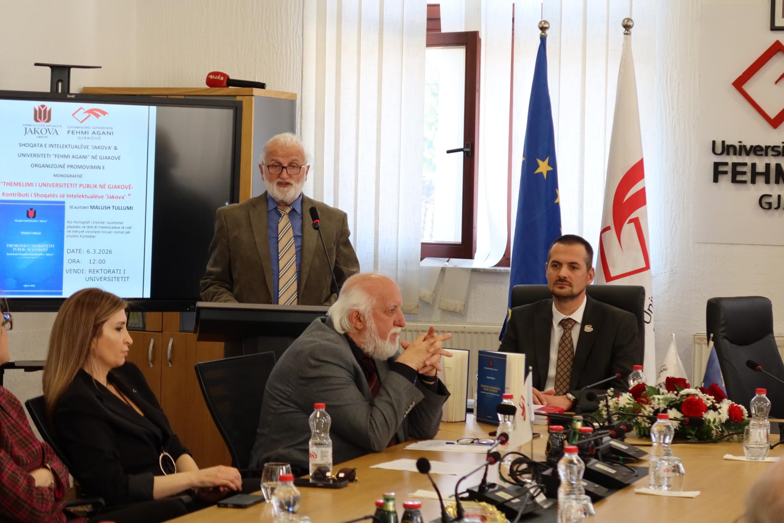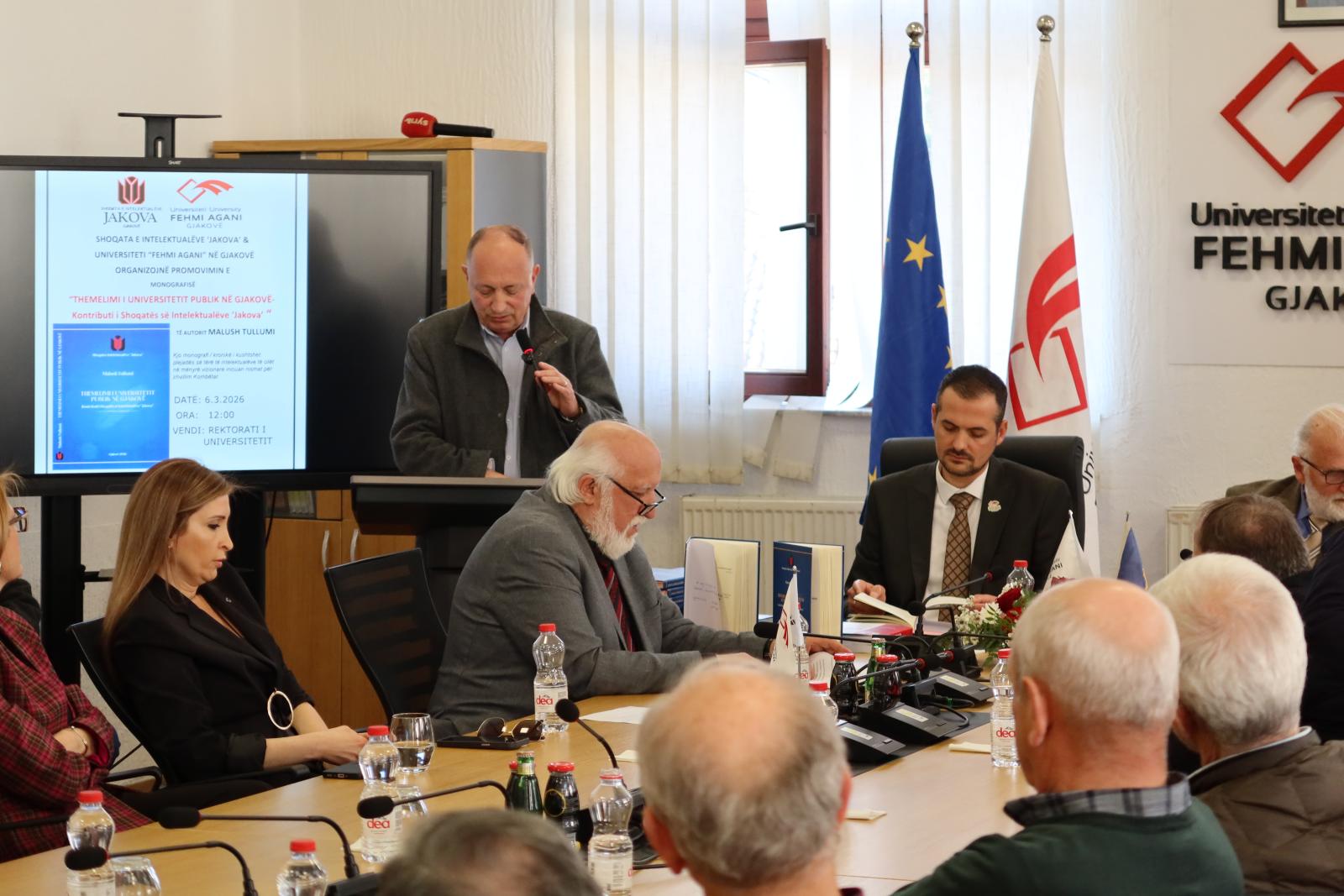 Universiteti “Fehmi Agani” në Gjakovë shënoi 13-vjetorin e themelimit të tij me një aktivitet solemn të organizuar në sallën e Rektoratit, ku u promovua monografia “Themelimi i Universitetit Publik në Gjakovë – Kontributi i Shoqatës së Intelektualëve ‘Jakova’”, me autor z. Malush Tullumi.