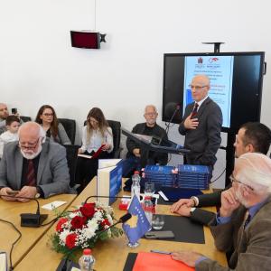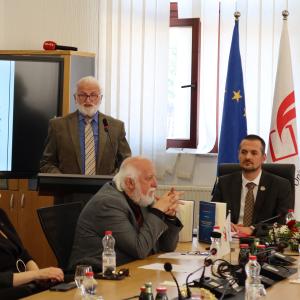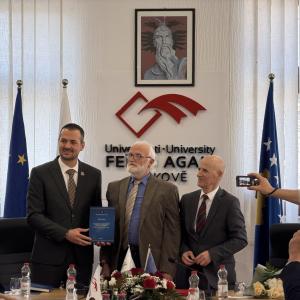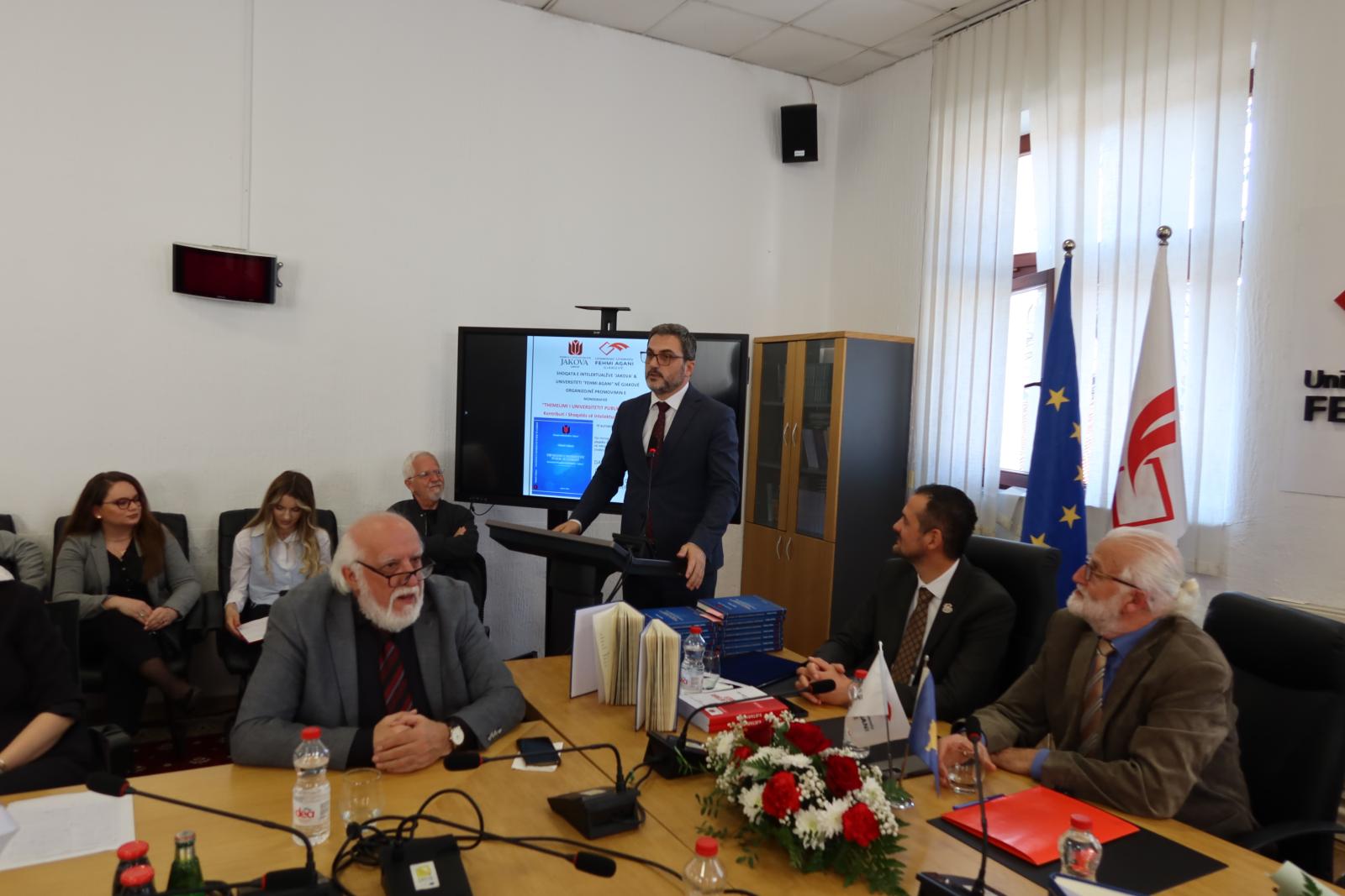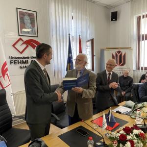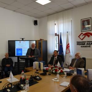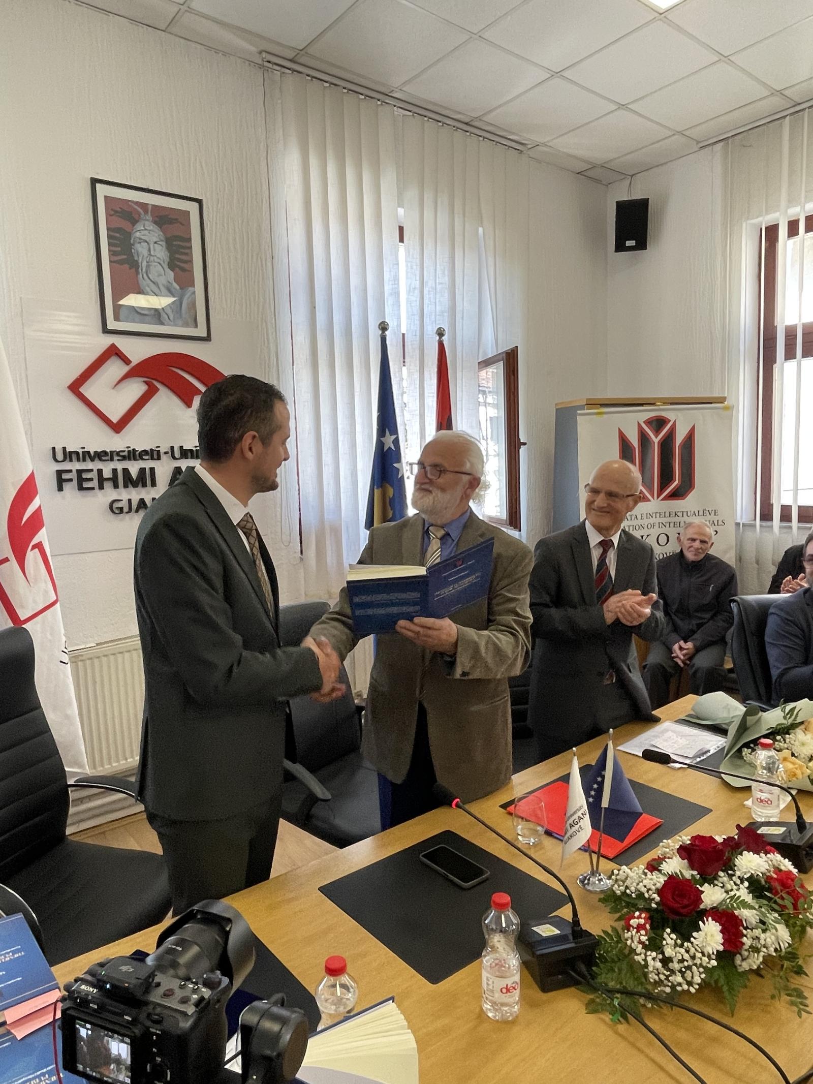 Ceremonia u përmbyll me dhurimin e disa ekzemplarëve të monografisë nga autori për Rektorin, të cilat do të jenë pjesë e fondit të bibliotekës së Universitetit.