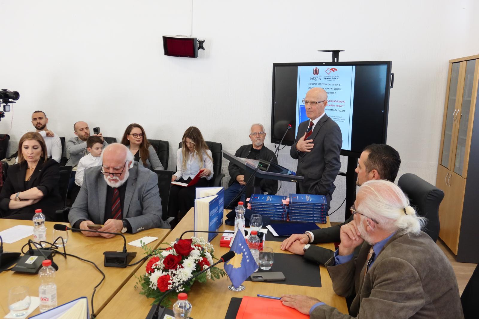 Më tej, Kryetari i Shoqatës së Intelektualëve “Jakova”, Prof. Dr. Ruzhdi Sefa, theksoi rëndësinë e dokumentimit të historisë së përpjekjeve për themelimin e universitetit në Gjakovë, duke vlerësuar se kjo monografi përbën një dëshmi të rëndësishme për rolin e intelektualëve dhe të komunitetit në zhvillimin arsimor të rajonit.