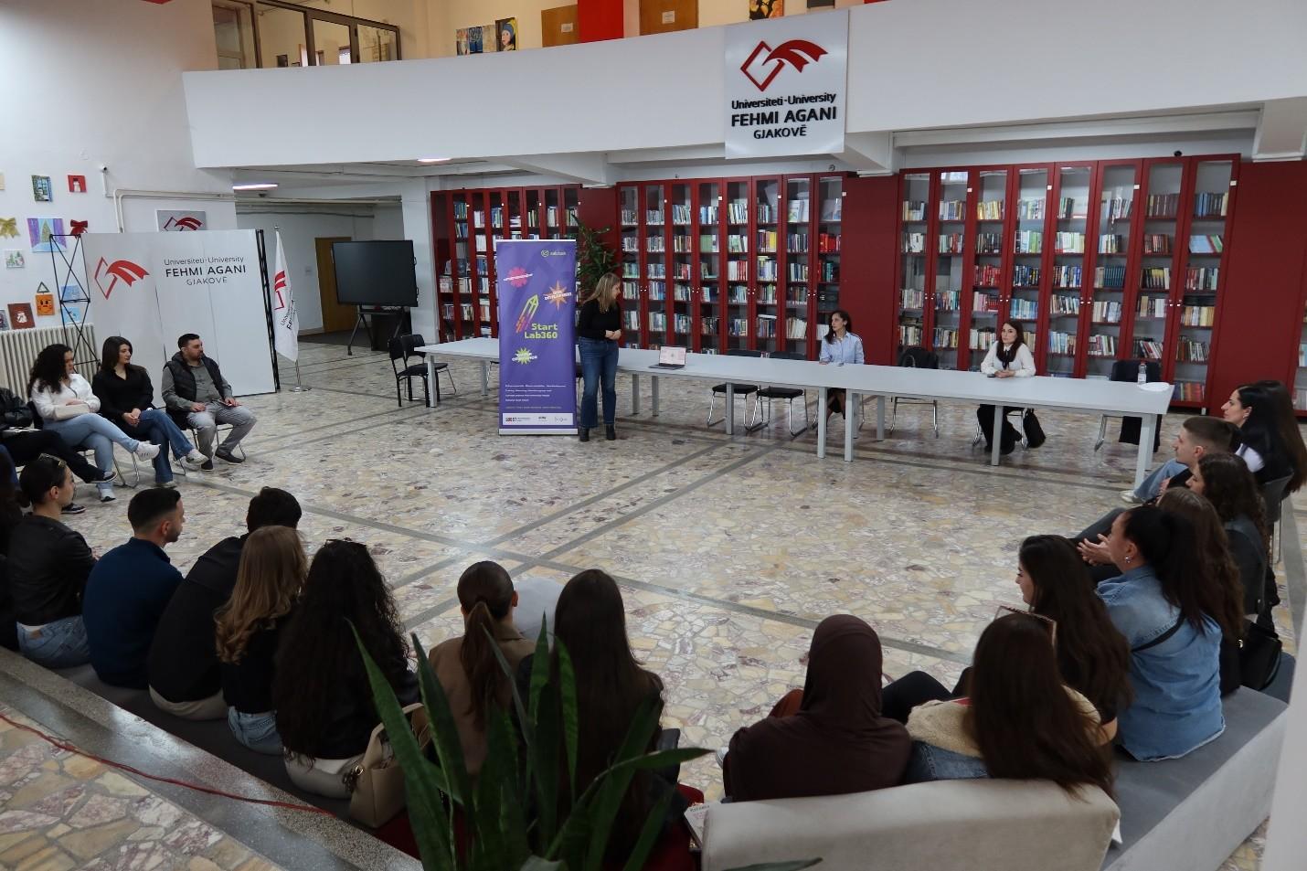 Sesion informues për projektin StartLab360 me studentët në hollin e tri fakulteteve