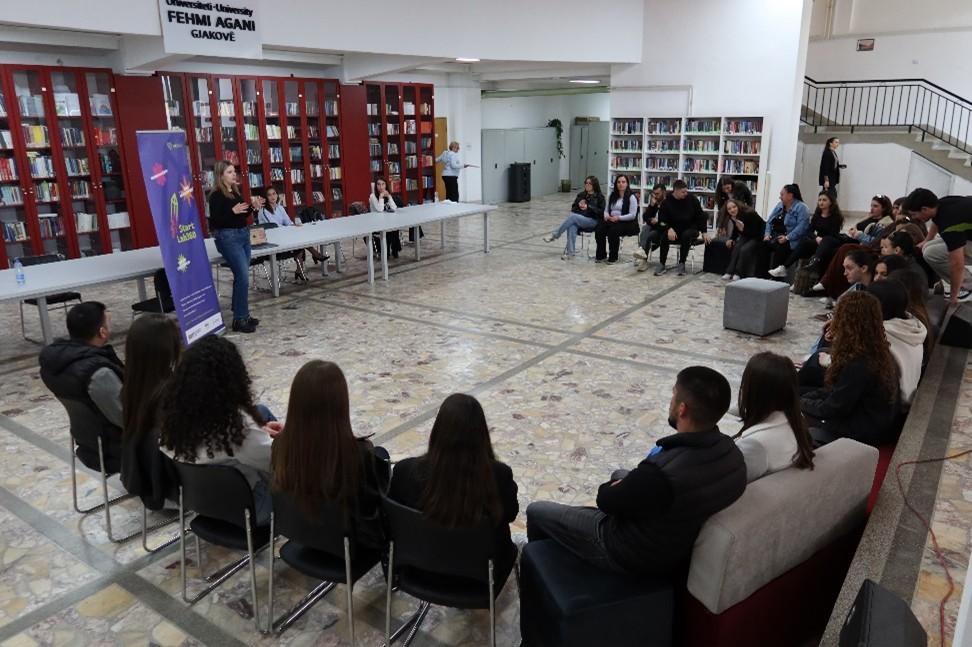 Në hollin e tri fakulteteve u mbajt një sesion informues për projektin StartLab360, ku morën pjesë studentë nga drejtime të ndryshme studimi. Ky aktivitet u prezantua nga Vlera, e cila i njoftoi studentët me mundësitë dhe aktivitetet që ofron ky program për të rinjtë.